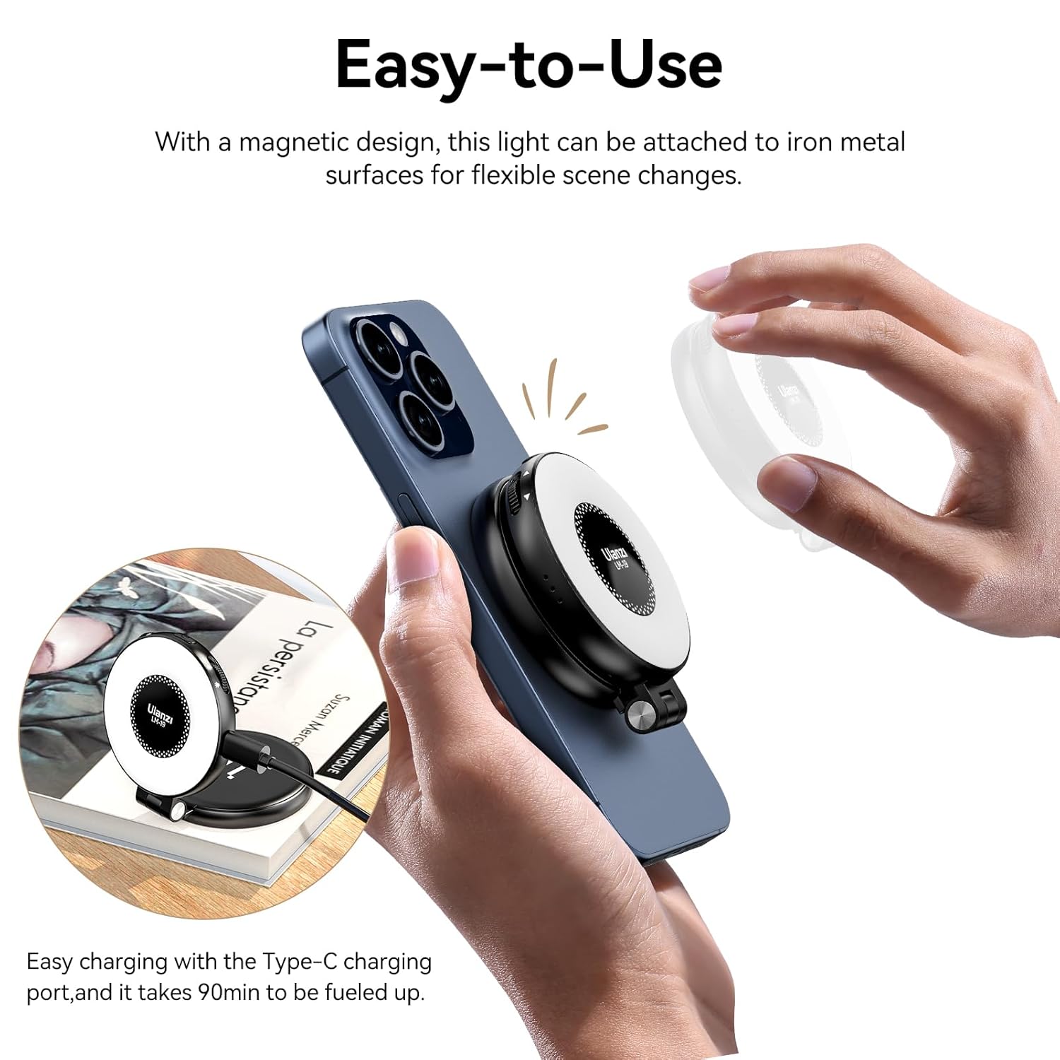 Fill Light for Magsafe LED Phone Light Attachment Selfie Ring Light Brightness Adjustable Compatible w Magsafe for iPhone Smartphone Vlogs/Photography/Video Conference Color White